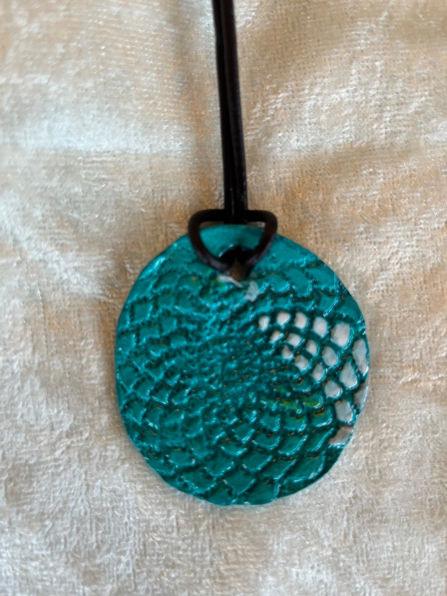 Nydelig turkis anheng i selvtørkende leire veier få gram